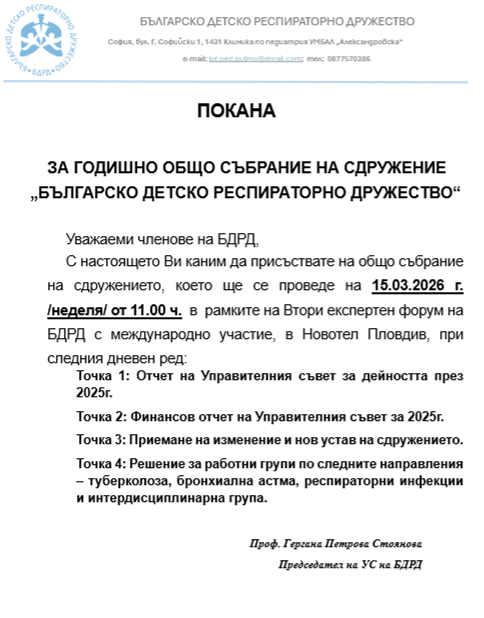 Сдружение за обмен на идеи и знания в детската пулмология.